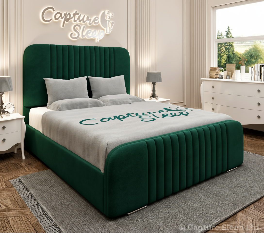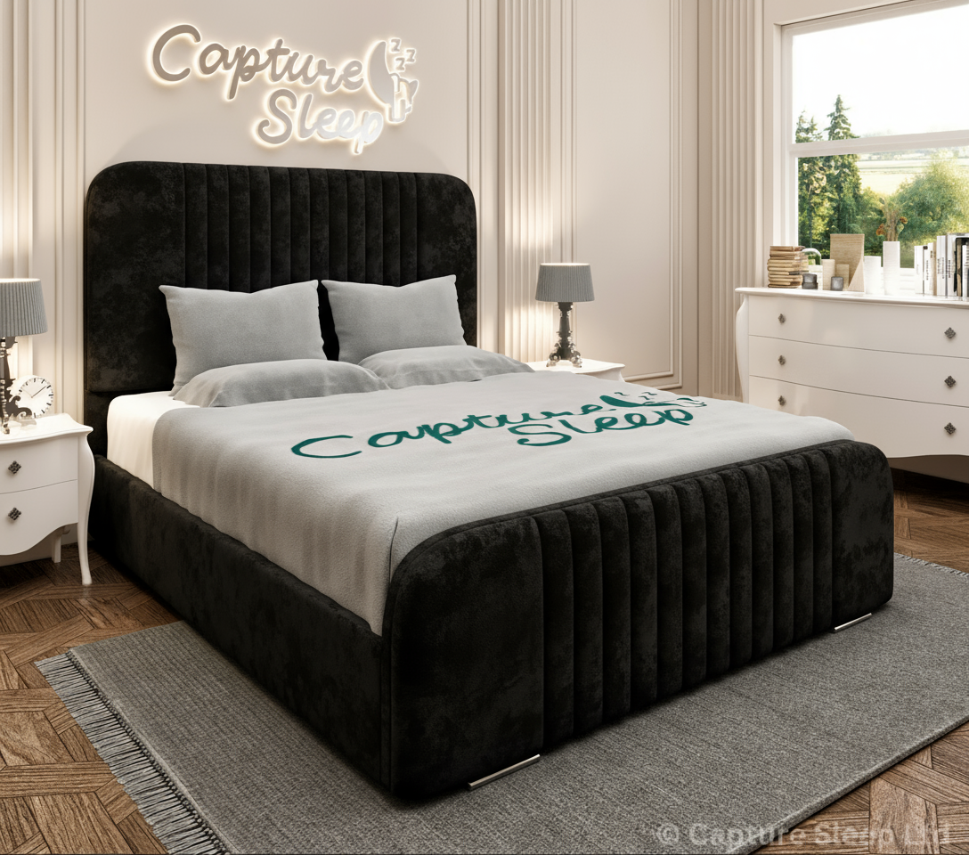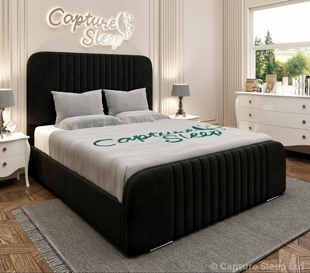 Upgrade your bedroom with the sleek and stylish Atlas Linear Bed Frame with Curved Headboard. The clean lines and elegant curves provide a modern touch. Available in range of fabrics.