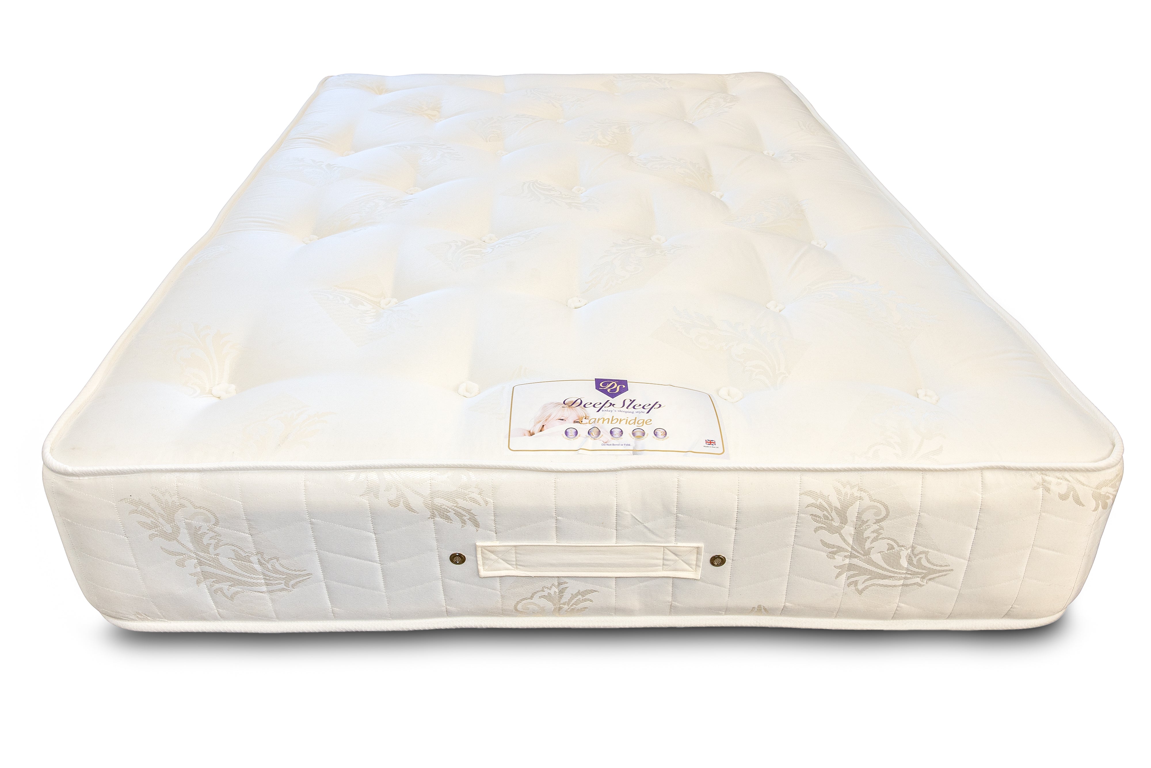 The Deep Sleep Cambridge Backcare Mattress is a medium/firm tension deep tufted mattress. Consisting of a 12.5g Bonnell Spring system with rod edge support and luxury fillings it provides great body support throughout the night. All Covered in a Sumptuous Belgian Damask Fabric. Part of the back care range.