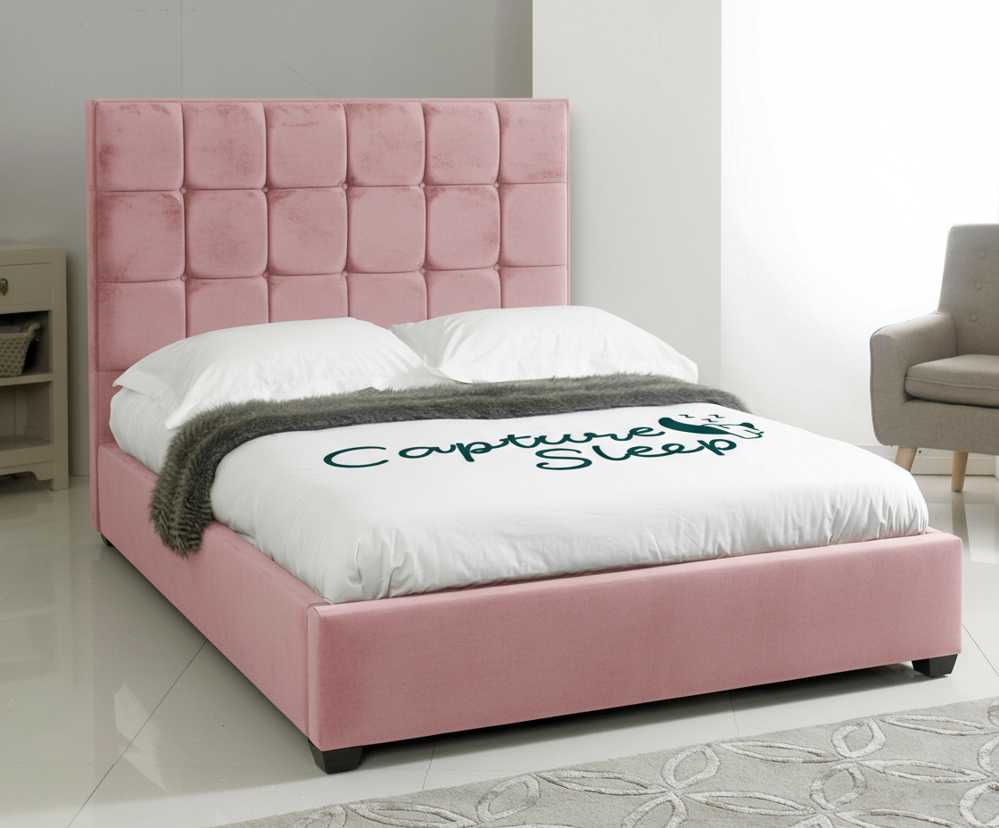 The Cube Bed Frame has a simple but elegant low foot end design. Its cubed design adds an extra touch of visual interest to any bedroom. It is available in various colours. The headboard is available with an option of matching buttons or diamantes.