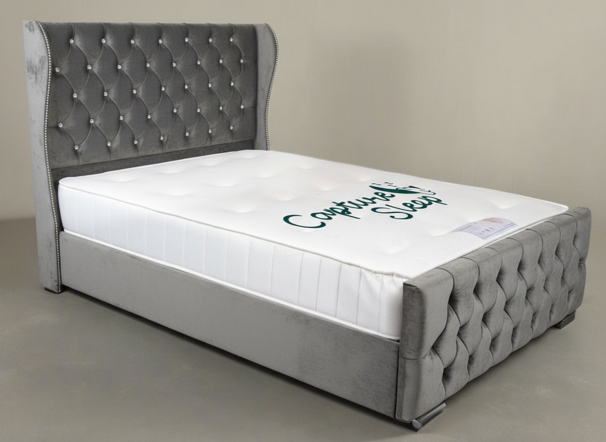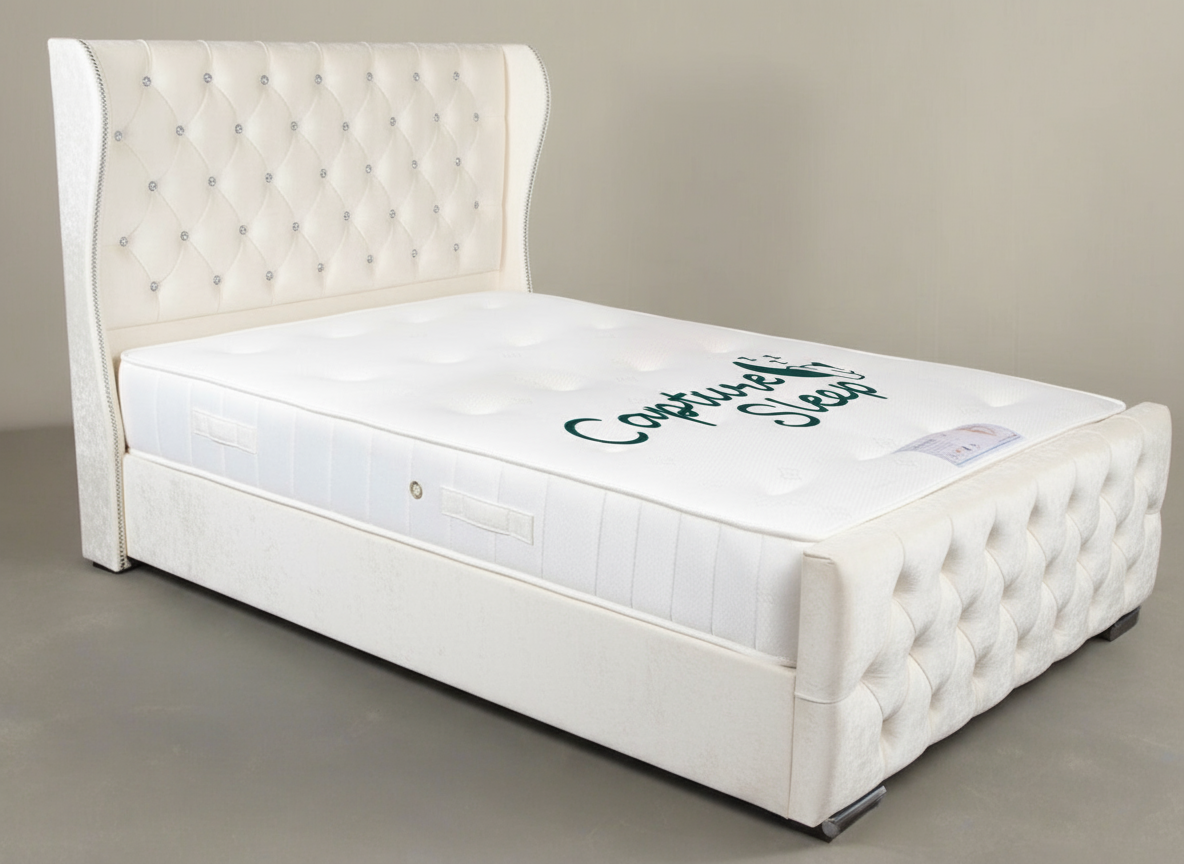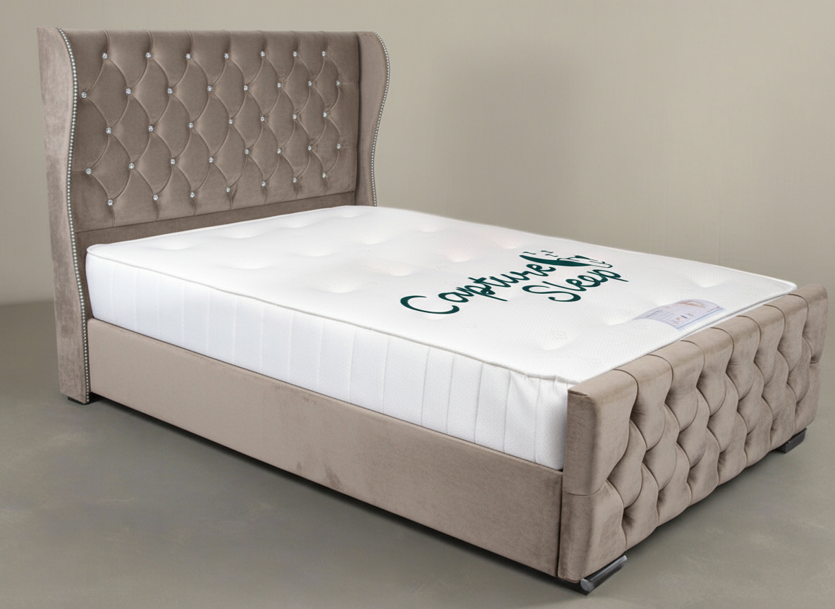 The winged headboard gives that classic twist of design. This headboard is, without a doubt, the statement feature of the bed and is cushioned for comfort.