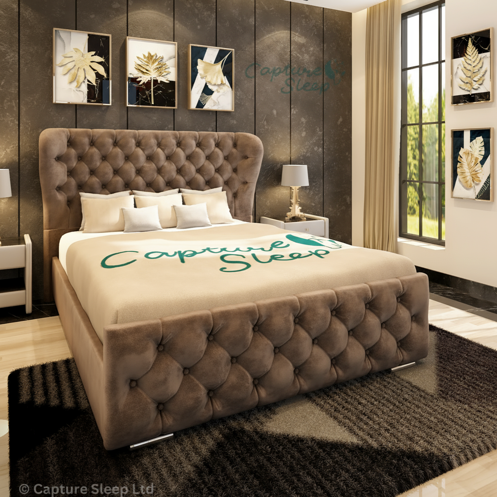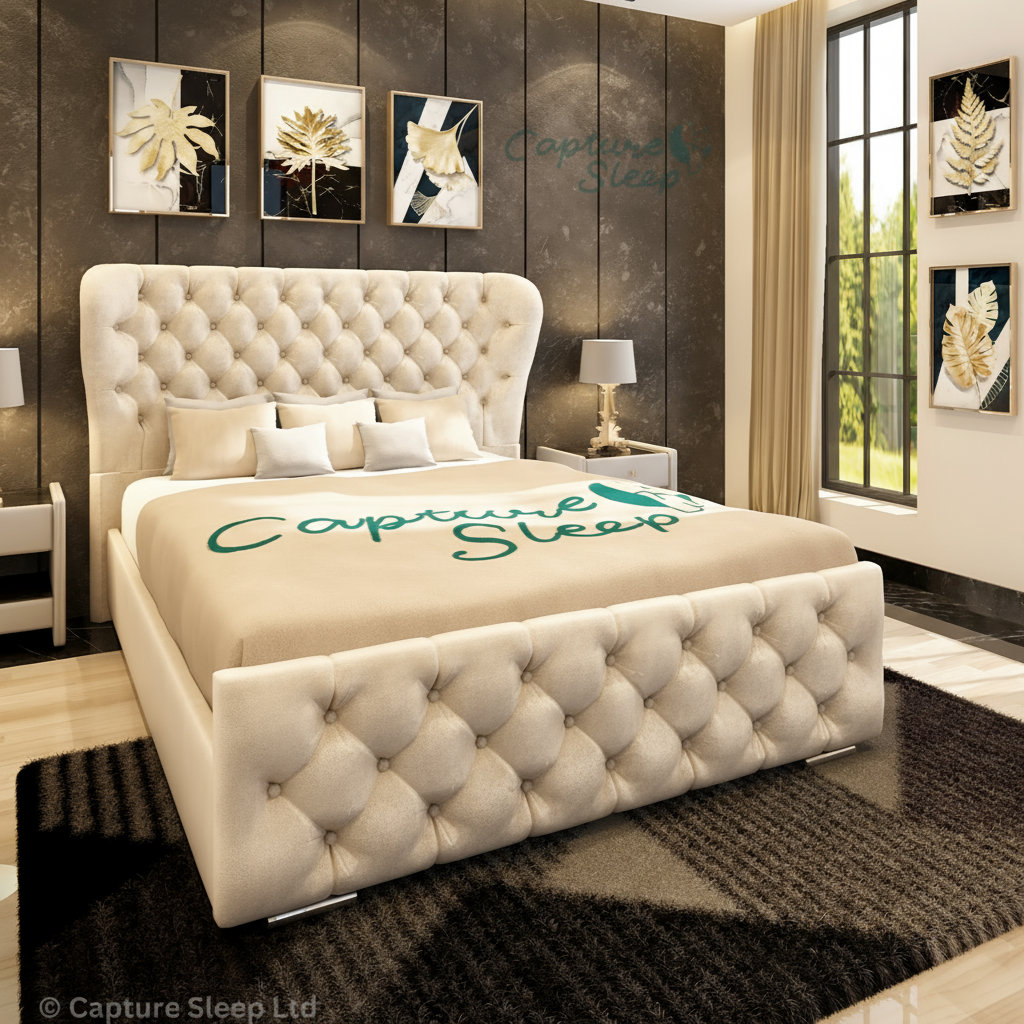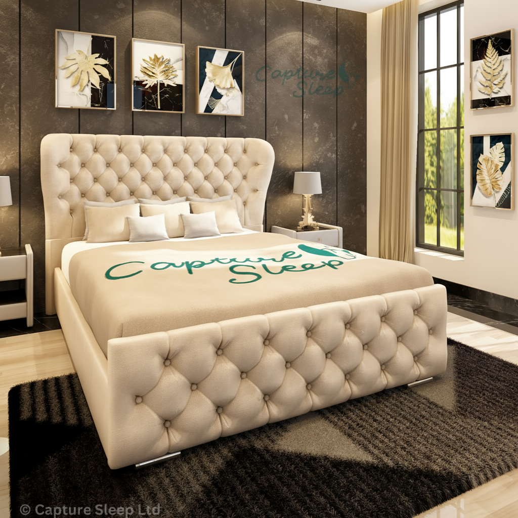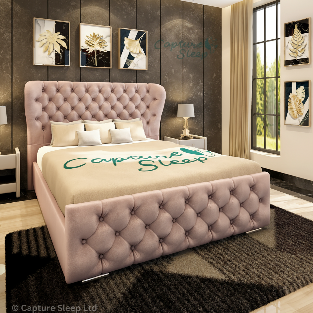 The Oxford Wingback Bed Frame is available in a range of fabrics, its stylish wingback design makes it an ideal piece to instantly upgrade any bedroom. The classic Oxford design includes an option of matching buttons or crystal diamantes.